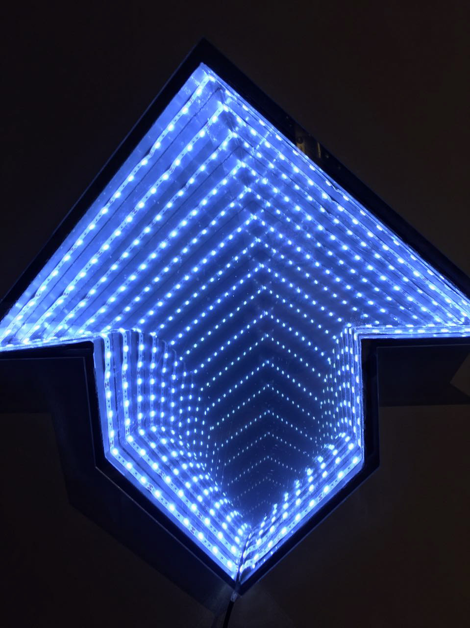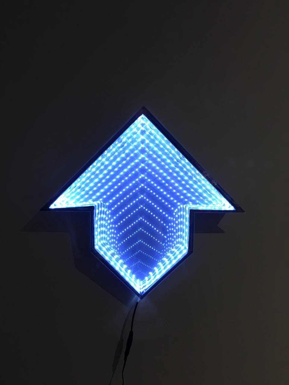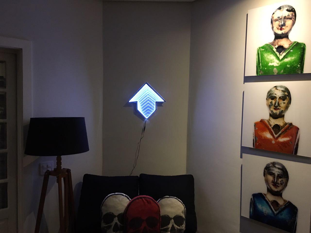 Some wall decor created to create an interesting and eye-catching effect to the ambient. Developed in Rhino3D and Illustrator, acrylic cut by laser with LED strips and double-sided mirror film.